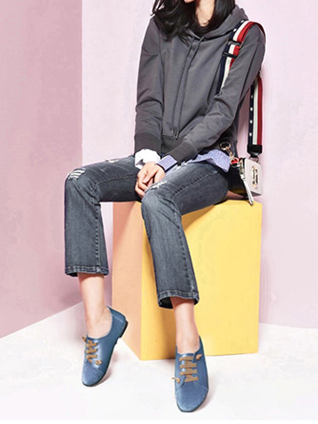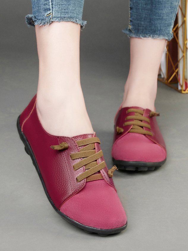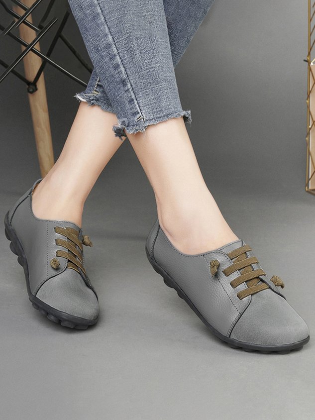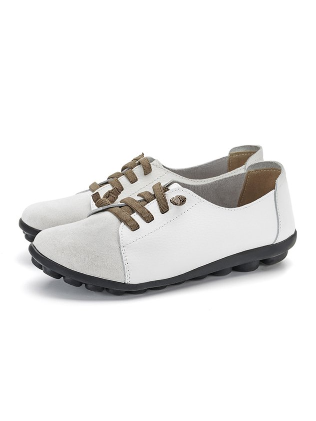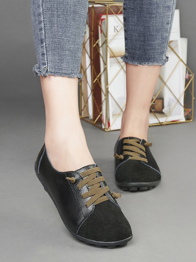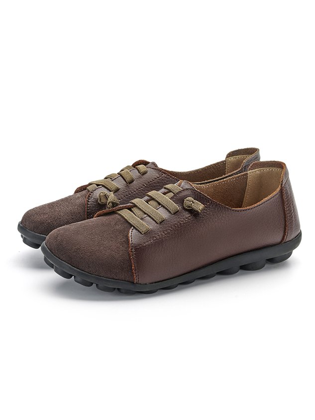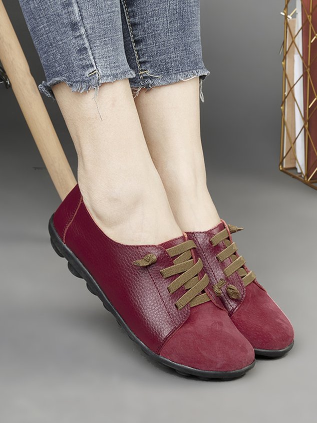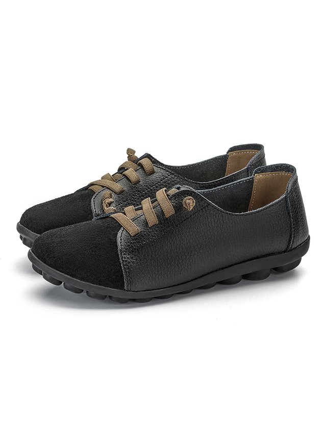 Retro Casual Cowhide Solid Color Beanie Flat Shoes