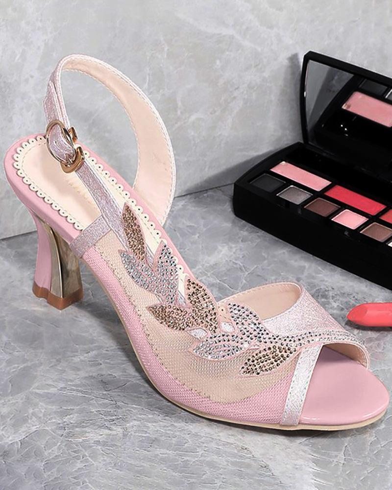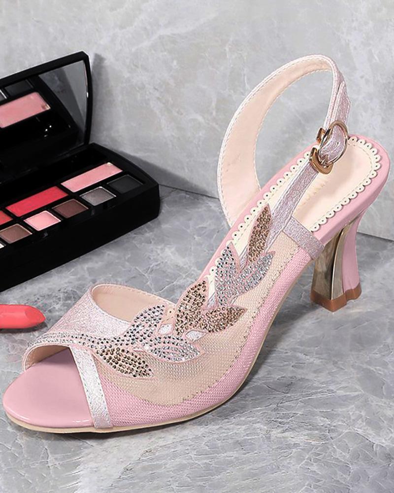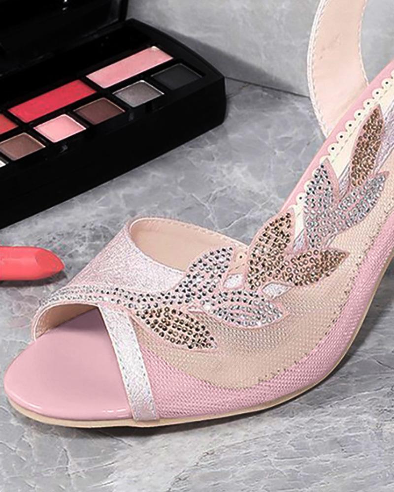 Slingback Peep Toe Leaf Pattern Rhinestone Wedding Guest Shoes